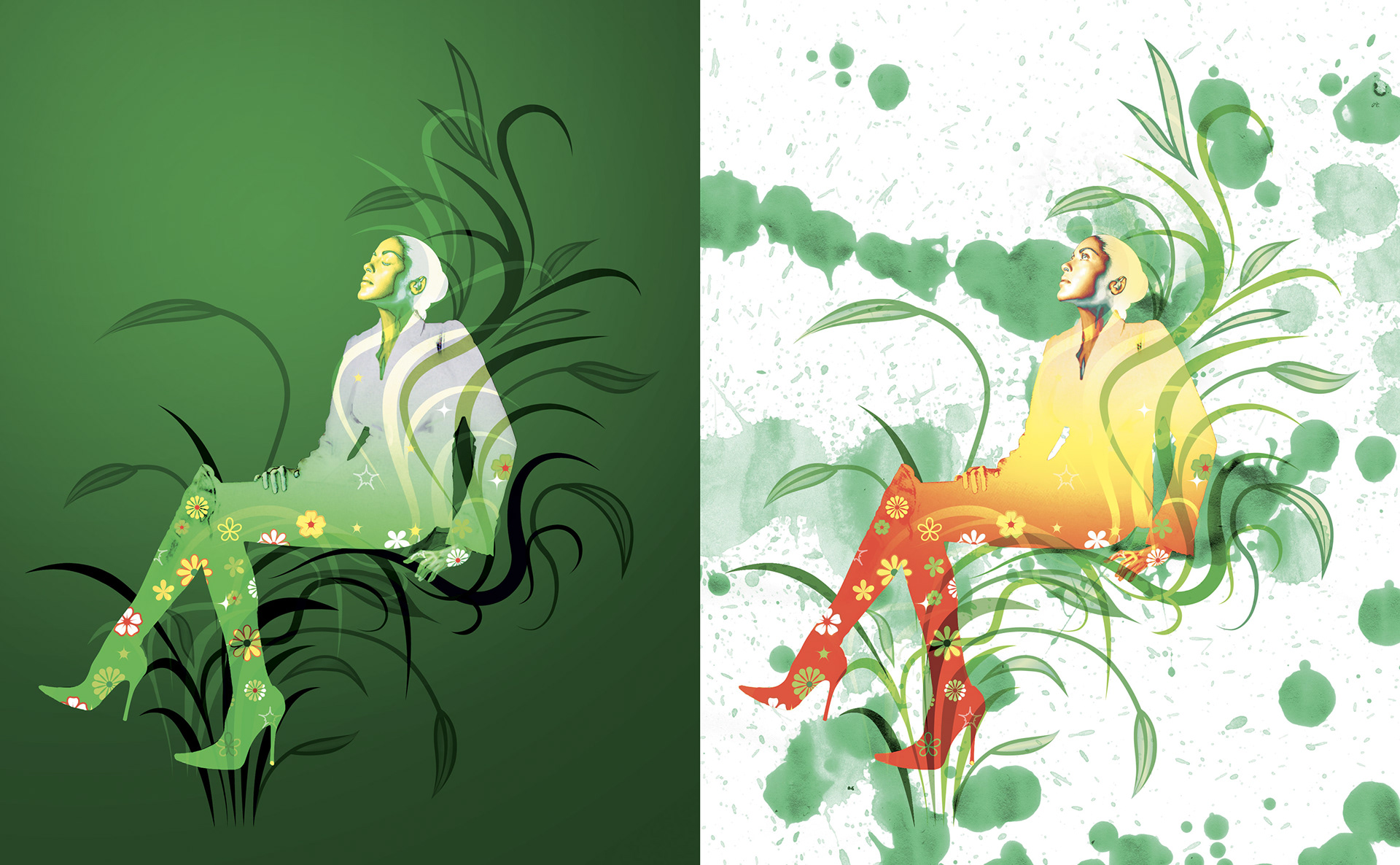 Travail d'illustration avec photoshop, Illustrator et dessin traditionnel.